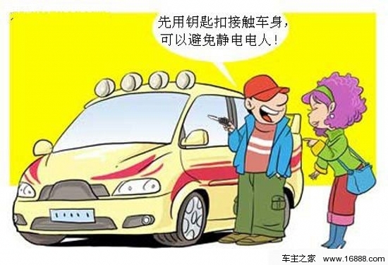 在準備下車的時候,司機可用手指碰鐵的部位,再開車門,把左手放在車門有鐵的位置,然后松開右手,繼而下車,這時候就不會被電到了。坐后排的乘客,則可以在下車時(即在身體與座位摩擦時),提前手扶金屬的車門框,可以把身上的靜電排掉,而不至于下車后突然手碰鐵門被電到。