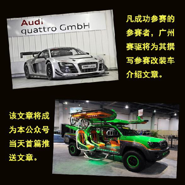 “超級愛改裝大賽”火熱報名中!為方便收集請留下以下資料;或者熱線咨詢廣州賽驅:020-29818290