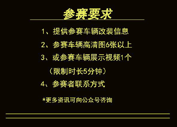 3、參賽改裝車高清大圖6張以上,或5分鐘以內視頻1個